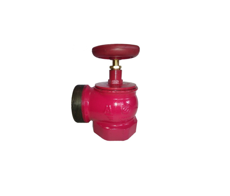 Клапан пожарный угловой (90°) чугунный с соединением типа муфта-цапка, выполняющий функцию перекрытия и подачи потока воды в пожарный рукав при тушении возгораний. Как правило, клапан устанавливается внутри пожарного шкафа и подключается к противопожарному водопроводу здания при помощи внутренней резьбы 2". Для простого и быстрого подсоединения напорного рукава выходное отверстие клапана оборудовано цапковым соединением с наружной резьбой.